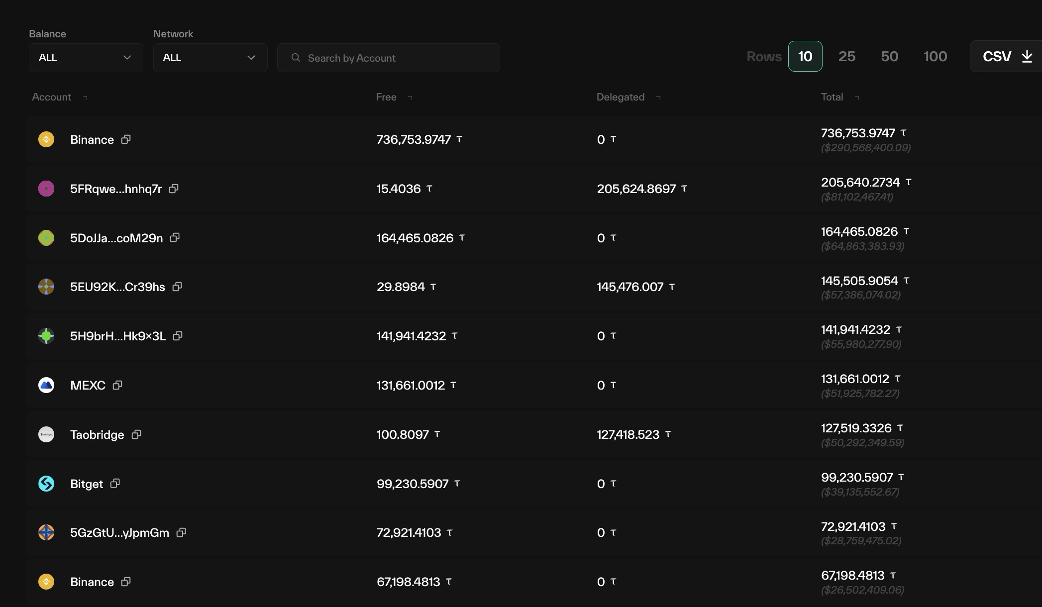 Note: tao that is staked to a hotkey is not displayed. This is a known issue, and will be resolved.